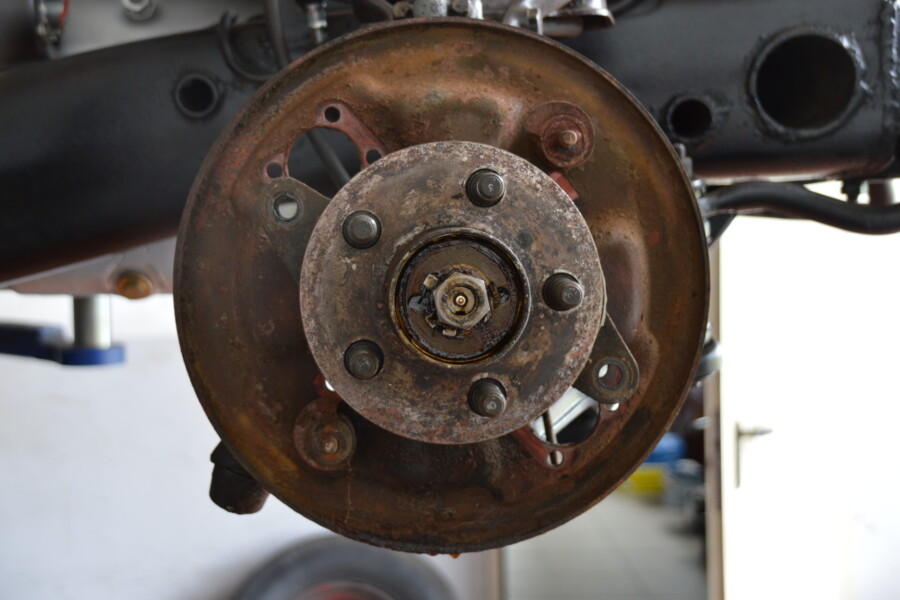 Motor komplett instandgesetzt und bereit zum Einbau. Die Schutzbleche haben wir gestrahlt und neu schwarz gepulvert.