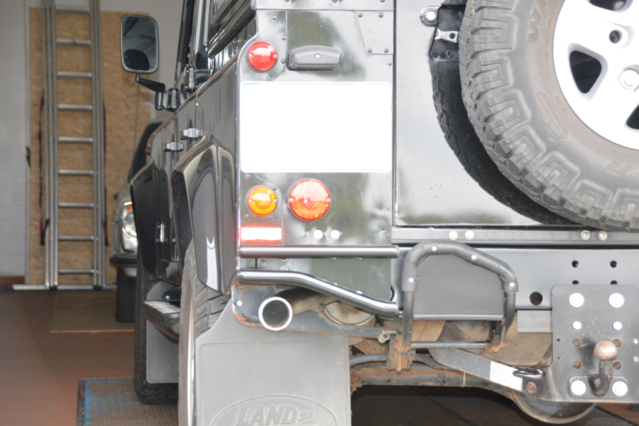 Land Rover Defender : Nachdem ich die rechte Heckpartie und Seitenwand ca. dreimal gerichtet hatte, hat sich der Besitzer zu dieser Stoßstange entschieden.